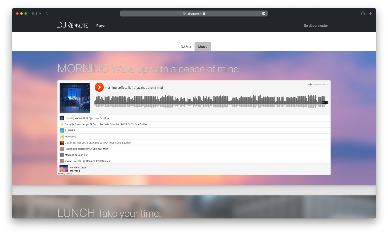 Le Site web est propriété de Johann Sutter demeurant au 120 rue Victor Hugo à Levallois Perret 92300. Celui-ci est hébergé par la société OVH. Il est régi par la Loi française. Les règles de conflit de Loi sont expressément exclues au profit de l’application complète et sans réserve de la Loi française. Les résidents étrangers acceptent formellement l’application de la Loi française en visitant ce site web et en utilisant tout ou partie des fonctionnalités du site web. Toute représentation totale ou partielle de ce Site web par quelque procédé que ce soit, sans l’autorisation expresse de Johann Sutter, est interdite et constitue une contrefaçon sanctionnée par les articles L.335-2 et suivants du Code de la propriété intellectuelle. Tous les utilisateurs de DJRemote devront être à jour de leurs cotisations de droits d'auteur afin de pouvoir diffuser des œuvres musicales en toute légalité.